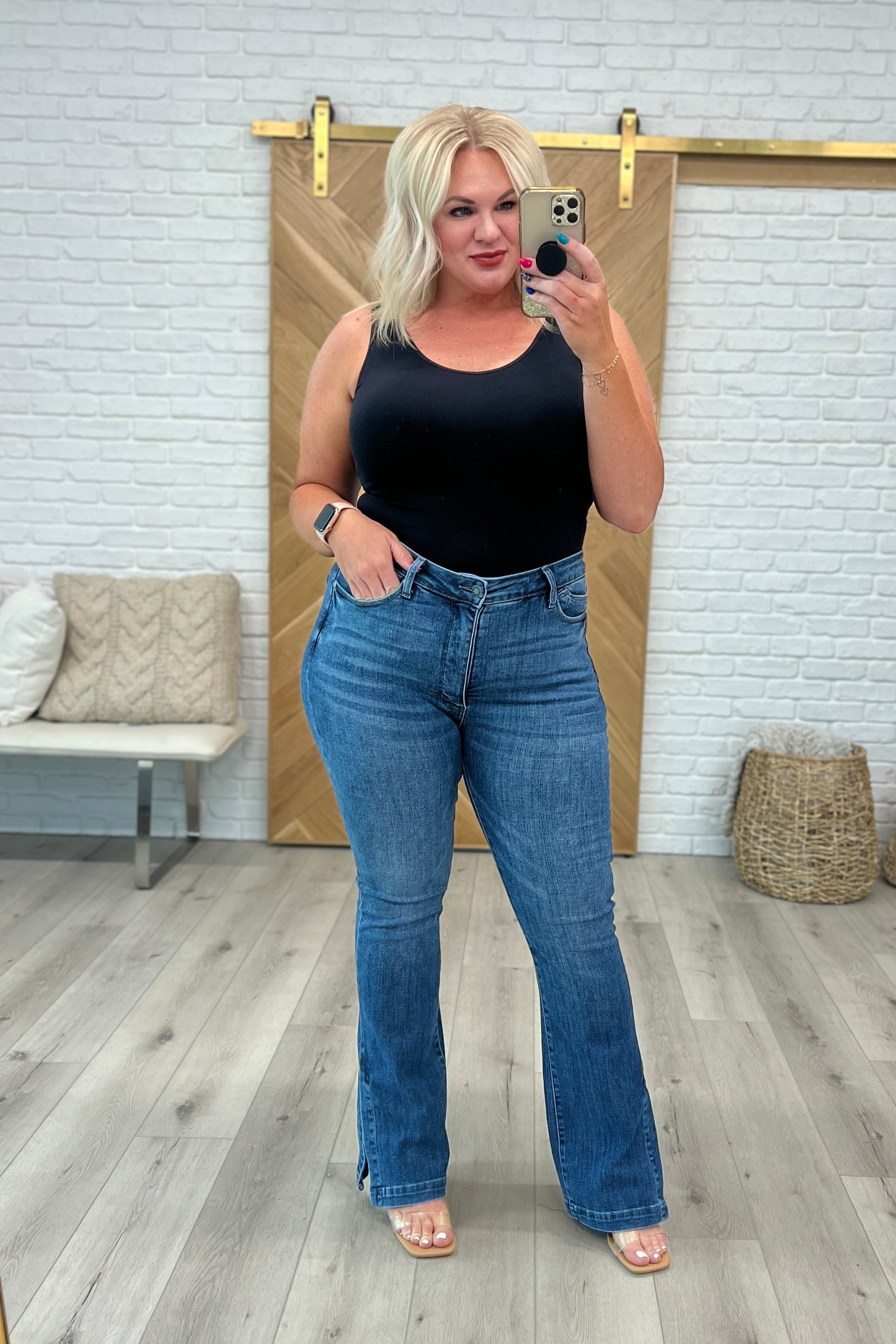 Look and feel amazing in the Augusta Slit Hem Bootcut jeans from Judy Blue! The high-rise waistband is designed to flatter and slim your figure with slimming control top technology, while the classic bootcut shape is updated by a modern slit hem. This medium wash denim shows off your style with zero distressing. Look and feel great with Augusta!